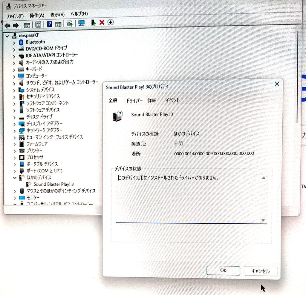 デバイスマネージャーの画面表示