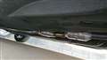 当該箇所はおそらくフロントコーナーセンサーです。ピピピッと音が鳴り、画像のマークが出てパーキングセンサーが強制オフになります。その時パーキングセンサーボタンは点滅してます。常時ではなくエンジン掛け始めや発進する時にたまに症状が出ます。1ヶ月点検時についでに見てもらったら症状は確認できたが原因不明。後日預けて再検査になりました。甘かったすぐ治ると思ってた、、、