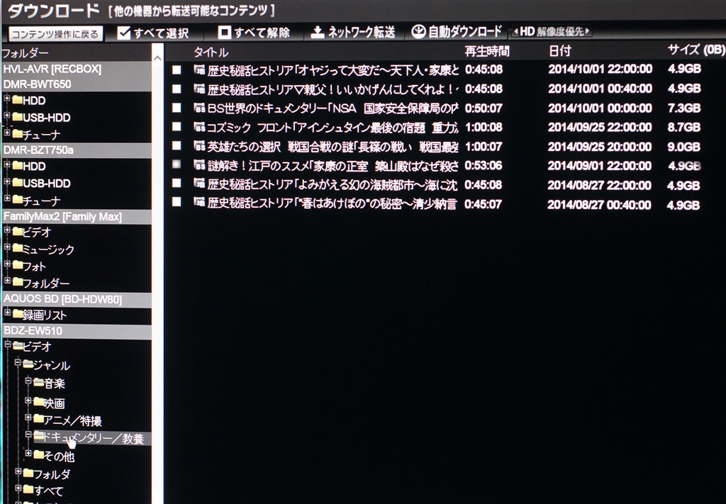 RECBOXのダウンロードダビング画面