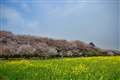 また、堤の隣には、菜の花が作付けされ、桜の淡いピンクと菜の花の黄色とのコントラストが見事です。