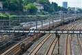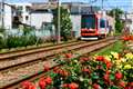 荒川区で線路脇にバラを植えて、バラとのコラボレーシュンを楽しんでもらっています。