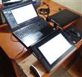 ノートパソコン、Windowsタブレット、intuosペンタブレット、液晶ペンタブレットcintiq 2台、24インチモニター