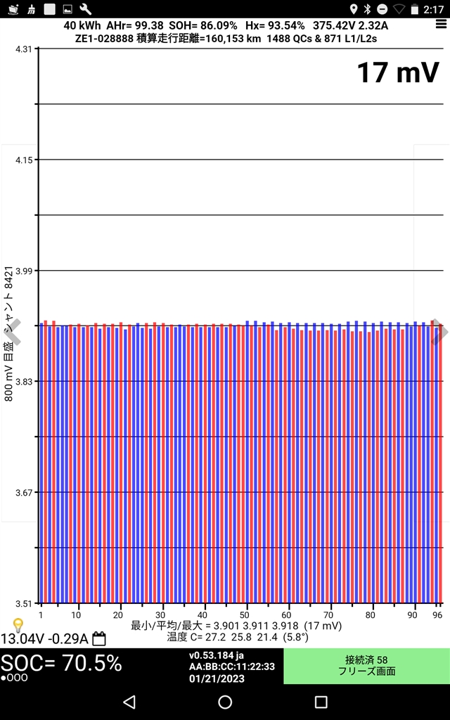 残量約75% 最大17mvのばらつき