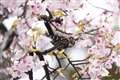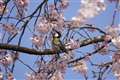 シジュウカラやヤマガラのカラ類は、桜の花の子房に穴を開けて花蜜