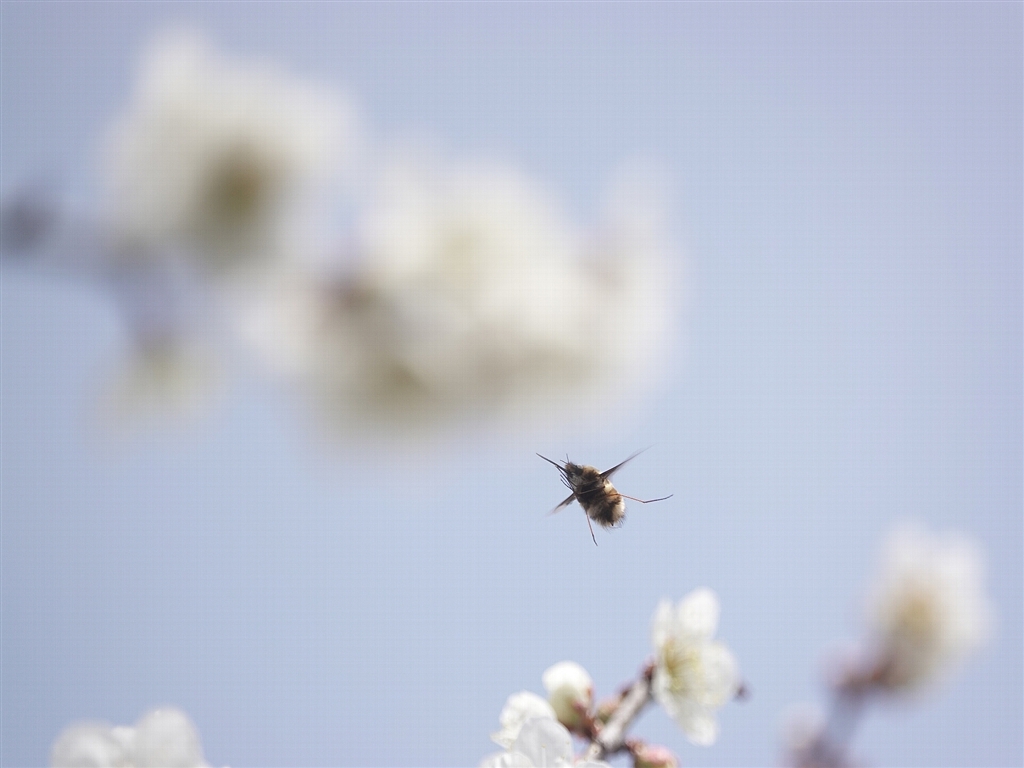 AFワイドで連写Midで34枚 ハナアブお気楽初撮影