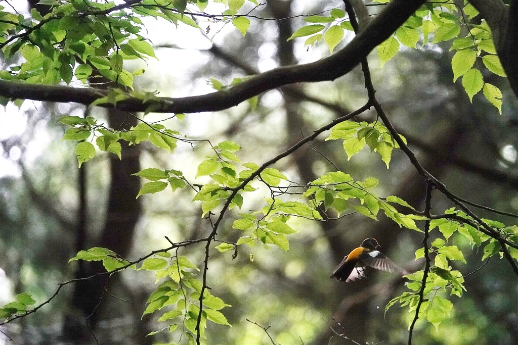 画質はともかく優れたAFの追従性でキビタキのこんな光景も(^^)