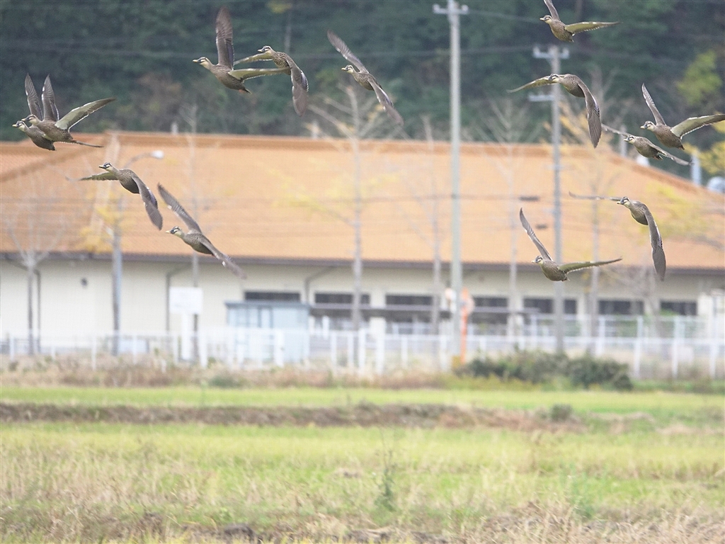 カルガモのこんな落雁シーンは背景がこんな風でも余裕です