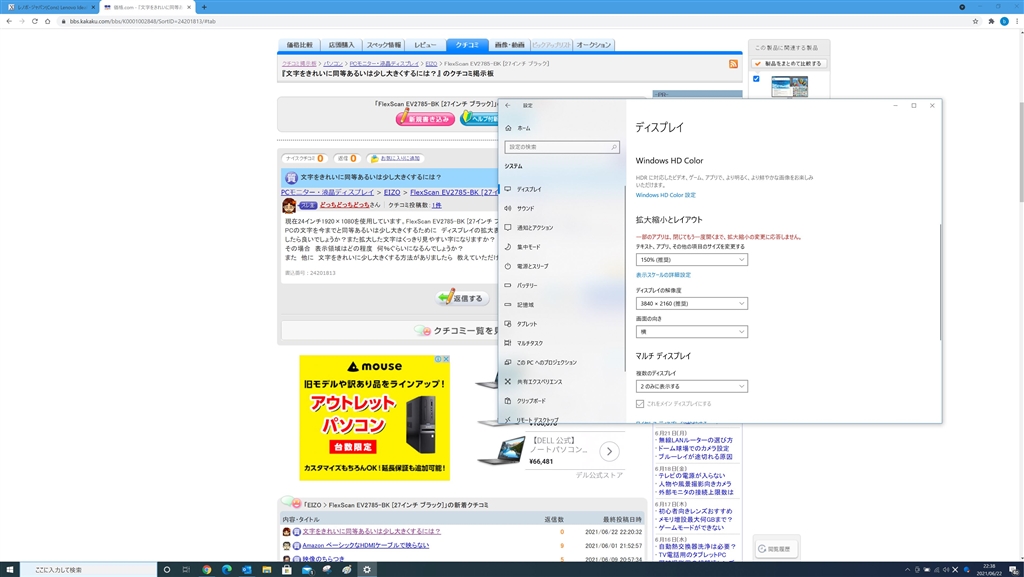 EIZO FlexScan EV2785-BK [27インチ ブラック] キハ65さんのクチコミ掲示板画像1/3