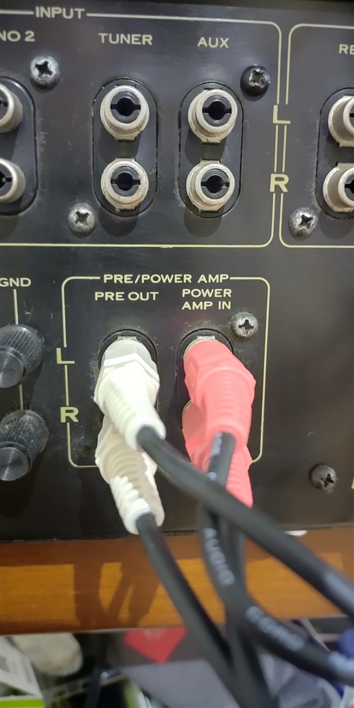 パイオニアアンプの接続部分です