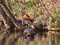 16:00頃 池の裏からノコノコと カモ達が餌も求め出てきましたので