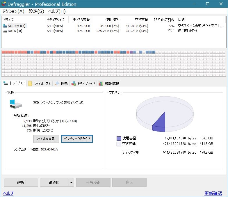 空きスペースのデフラグ