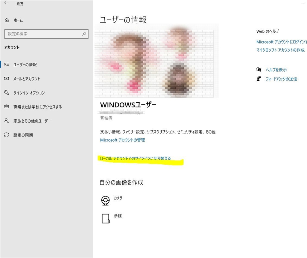 『ローカルアカウントに切り替えから』マイクロソフト Windows 10 Home 64bit 日本語 DSP版 あずたろうさんのクチコミ掲示板画像1/1