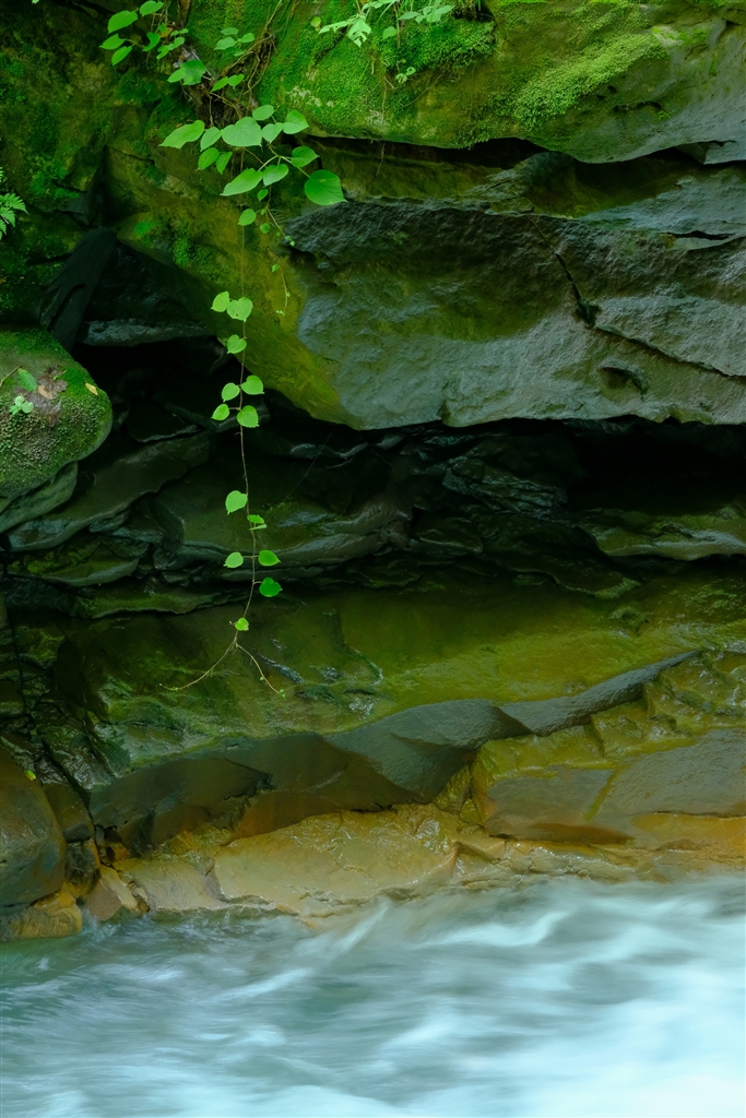 渓流の水が青みがかっていました。