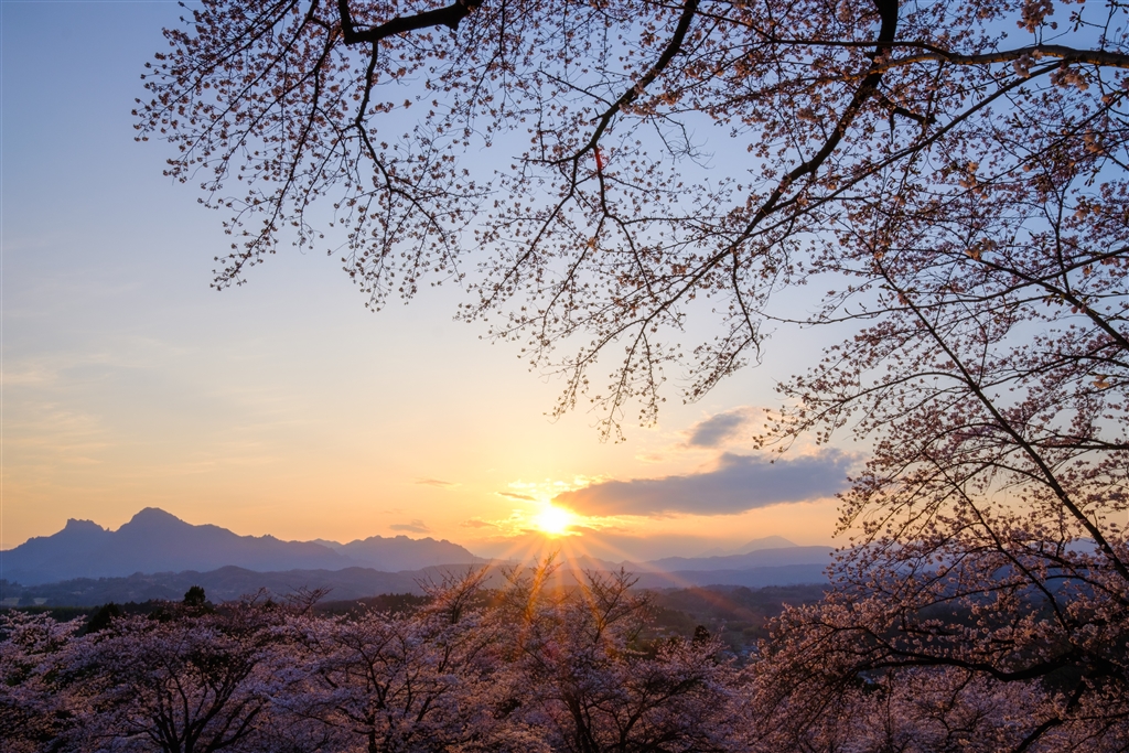 後閑城址公園より浅間、妙義をのぞむ