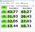 これはどうしたことかと思いCrystalDiskMarkでベンチマークをした所、シーケンシャルでも本当に40MB/s台しか