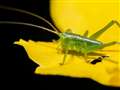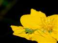 4cmぐらいの山吹草の花の上のキリギリスの幼虫を撮ってみました。No.12で2倍ぐらい。