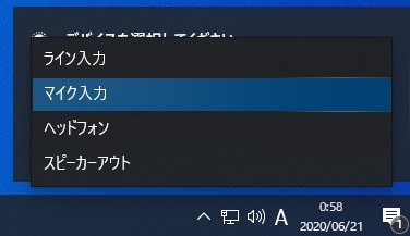 マイク端子ヘッドフォン選択状態