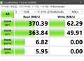 下記サイトにある「読み込み最大300MB/s、書き込み最大200MB/sの高速データ転送を実現するUSB3.1(Gen1)対応外付けポータブルSSDです。」とは程遠いデータですね。特に4K Writeの値が異常ですね。