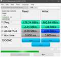 仕様情報では、Writeで200MB/sとあるが、CrystalDisk7では、程遠いデータしか出ていない。