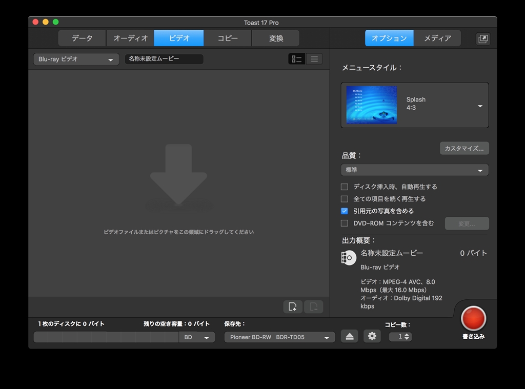 『ディスクの残り容量 : 0バイト画像』ROXIO Toast 17 Pro Sukinhoさんのクチコミ掲示板画像1/1