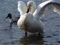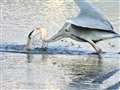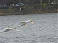 >作例にアップした、剱岳をバックに飛翔するハクチョウのような