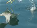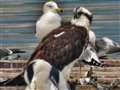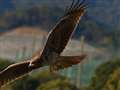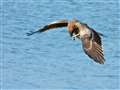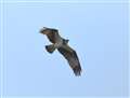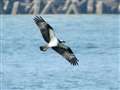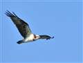 狩った魚を持って飛翔するミサゴの作例のように