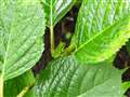 ニュウナイスズメのツガイ、メスは4匹もアオムシ咥えてますね、でも雄が咥えてるのは1匹でも4匹分以上ありそう。