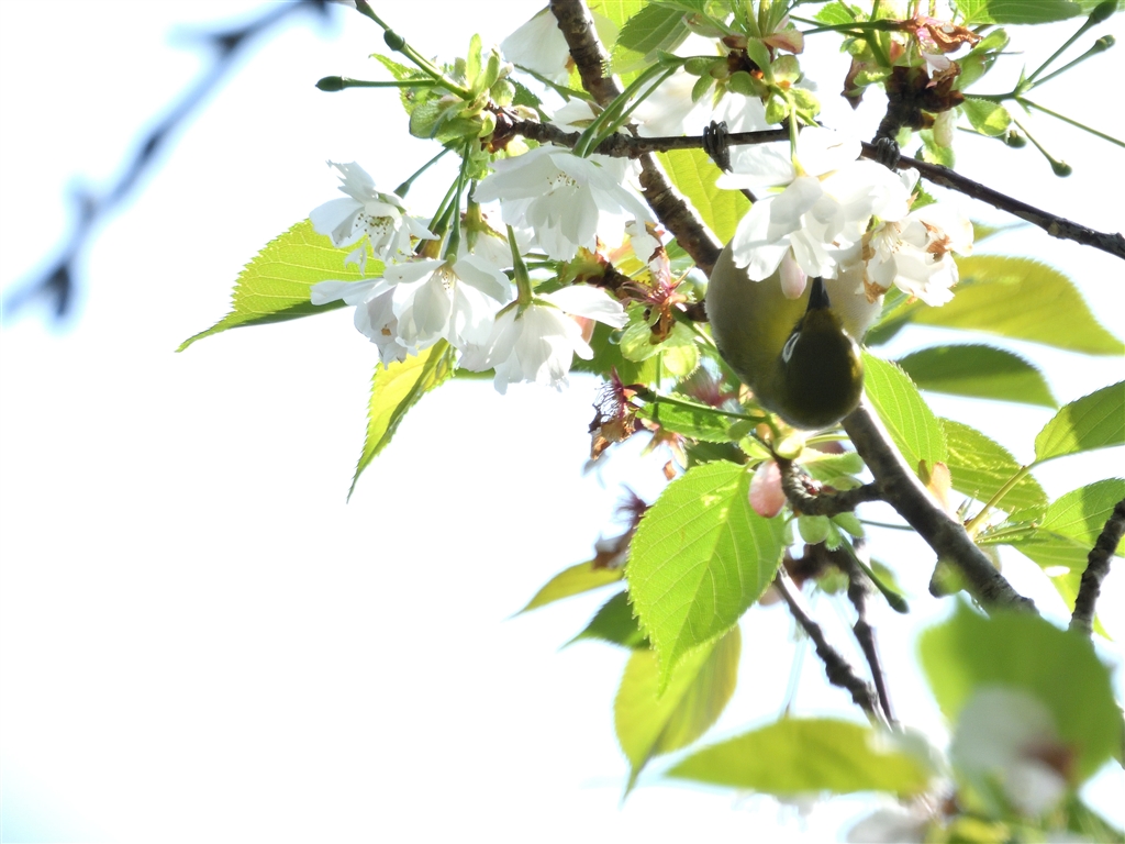 残花のサクラはメジロで賑わっていました