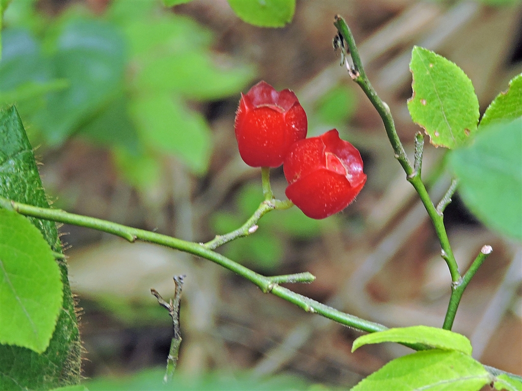 左写真の実で先端が凹み臼に似る。6〜8月に8oの極小の実。赤熟し酸味あり生食可