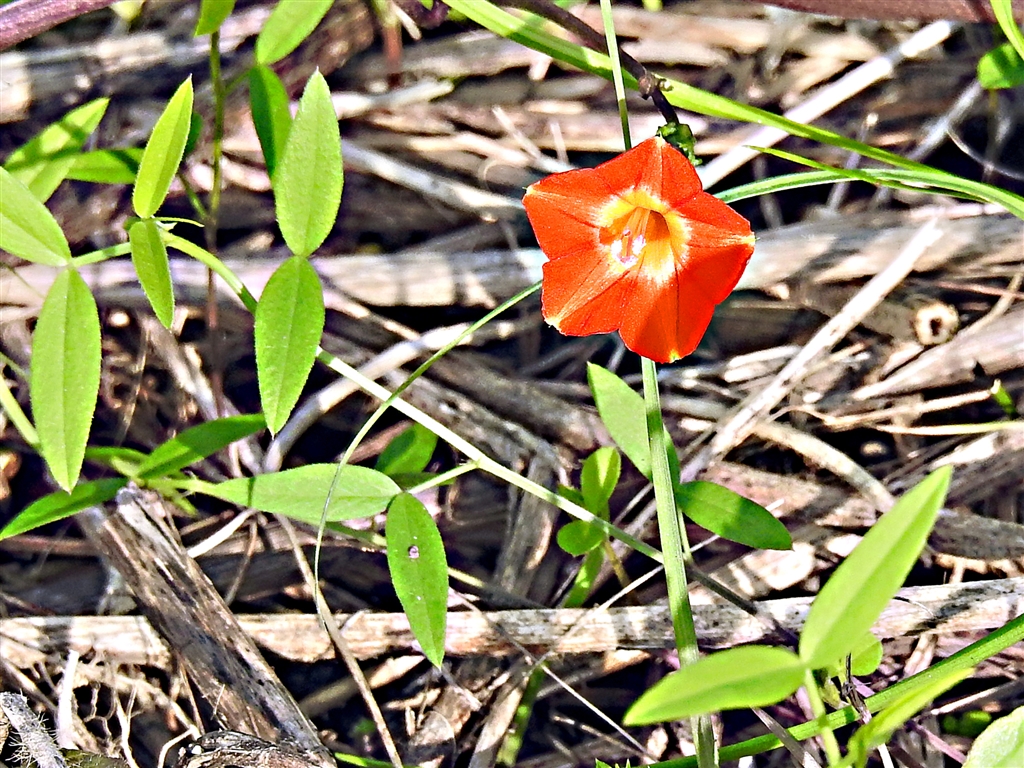 マルバルコウ(丸葉縷紅)北米原産蔓性帰化植物。丸い葉のルコウソウ。路駐横の畑で