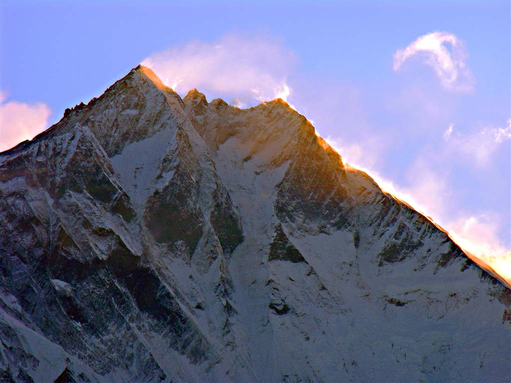 シャンボテの丘3880mからモルゲンロートのローツェ。左が主峰で8516m