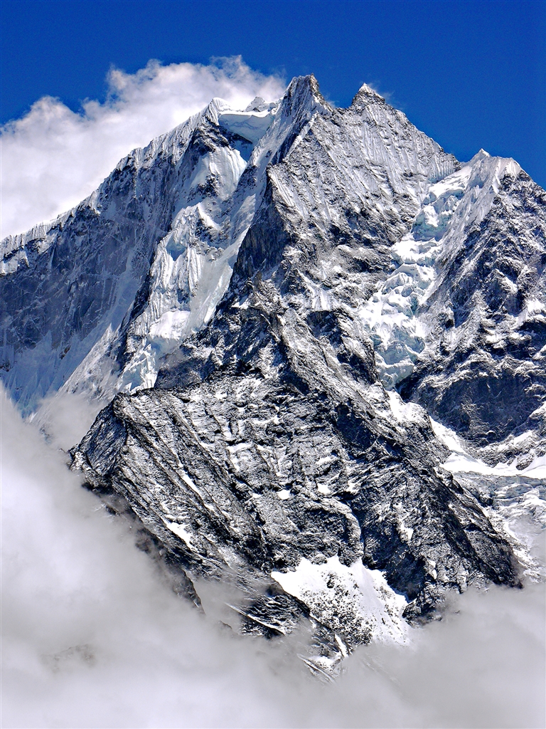 ローツェBCに向かうエベレスト街道を歩きだすとで真っ先に目に入るタムセルク6623m