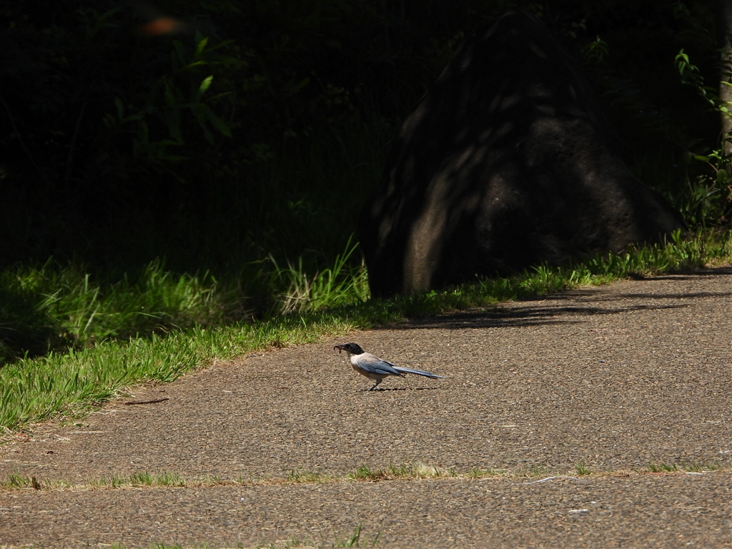 オナガもミミズを捕まえたみたい?