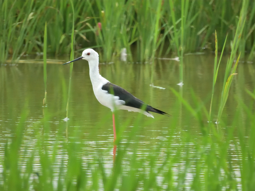 セイタカシギ 道ばたから近い水田にも来てくれました