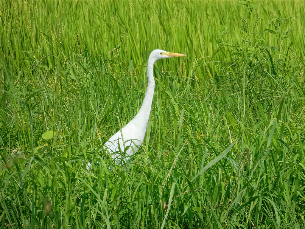 シラサギ、こちらとのソーシャルディスタンスルールを守りすぎて直ぐ遠くへ