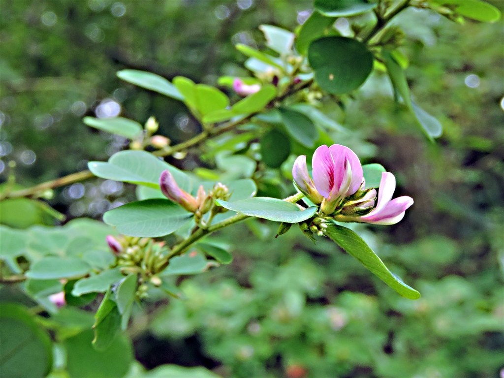 マルバハギ(丸葉萩)花柄が短く葉の間に重なって咲いているように見える。尾根に多い