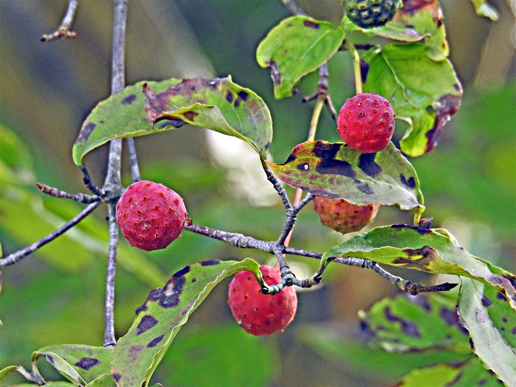 山法師の実のアップ。熊も大好き、鳥も大好き、私も大好き、中の種を取ってジャムに