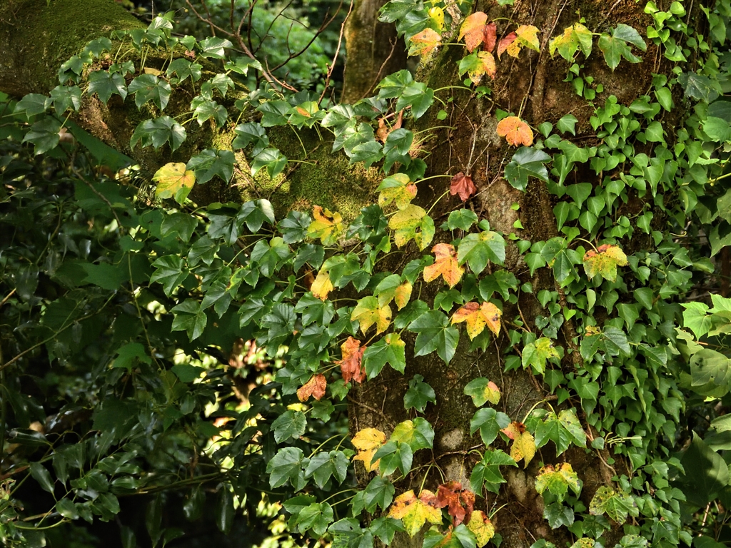 九月の声と同時にツタが僅かに色づき始めて