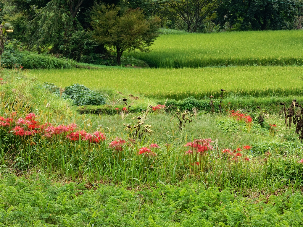 稲穂が黄色く色づく頃に満載の曼珠沙華があるともっと嬉しかったのですが
