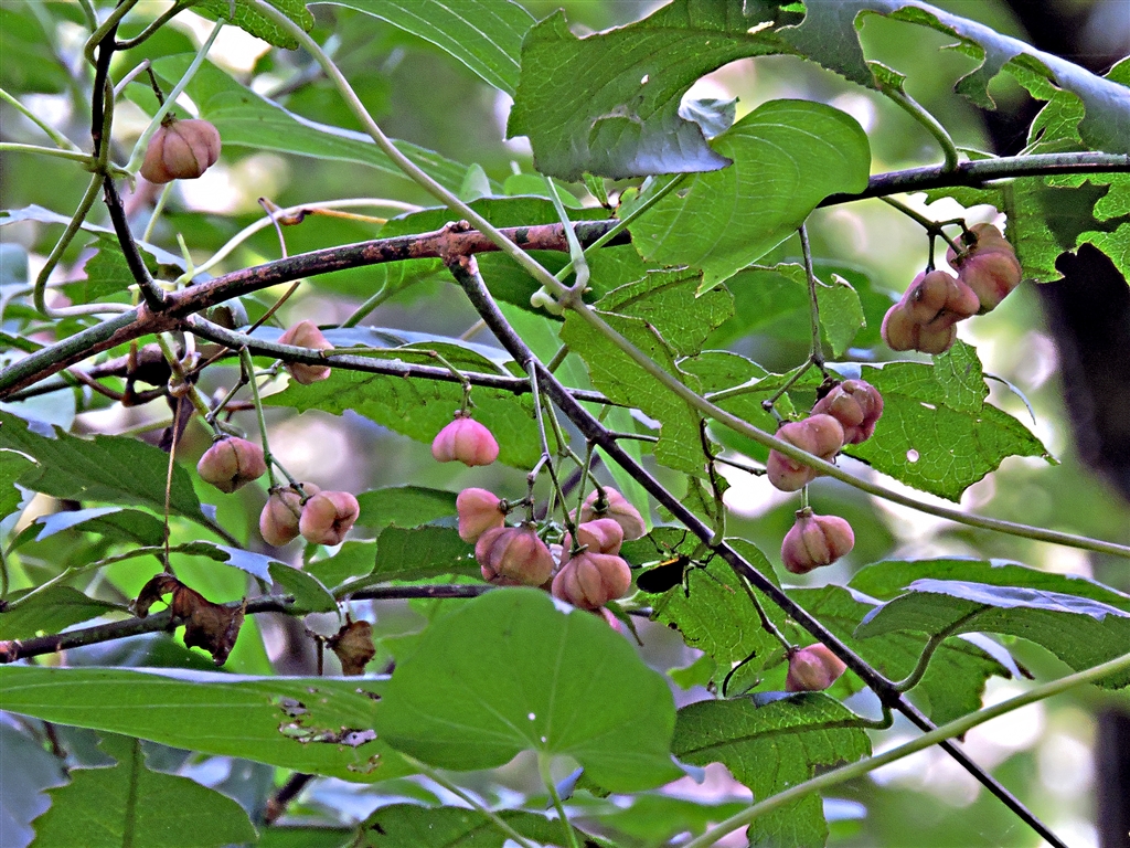 マユミの実 秋が深まると赤紅になり外皮が4裂し橙赤の仮種皮に包まれた種子が現れる