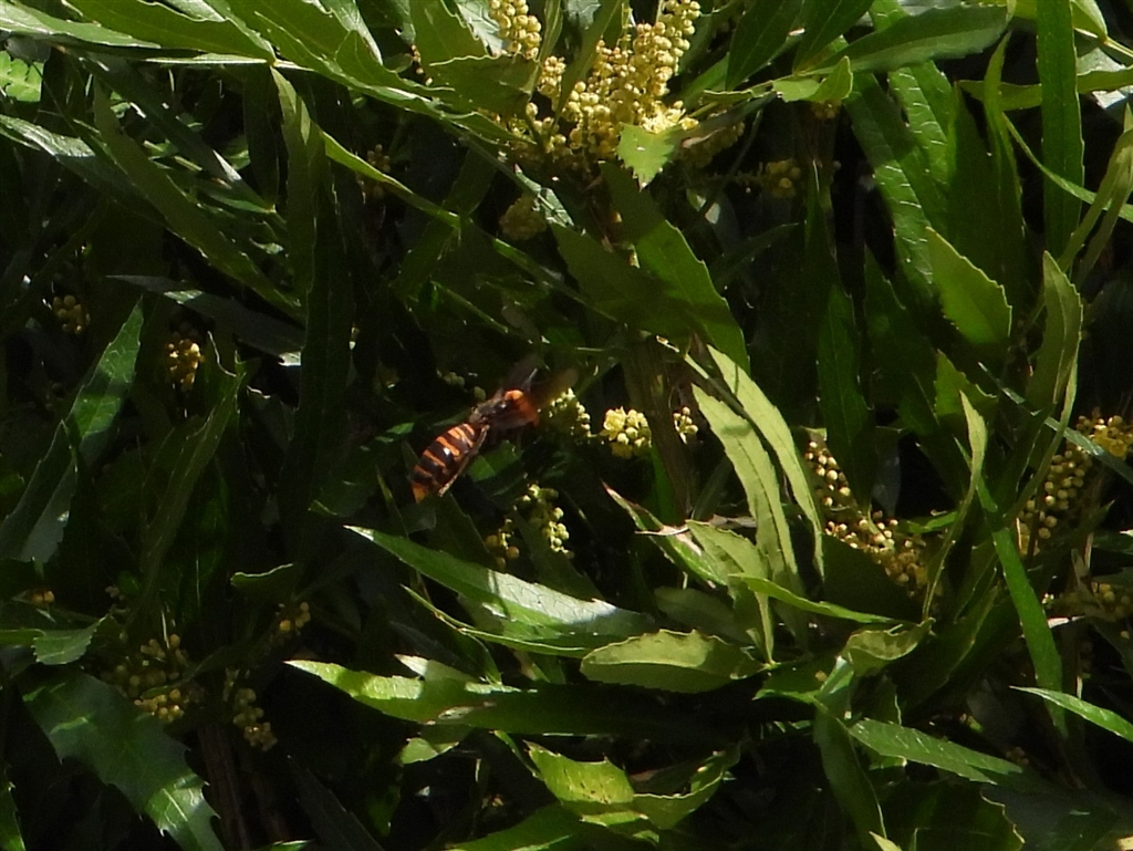 なぜかオオスズメバチが何匹もこの植物に・・・理由は?(トリミング)