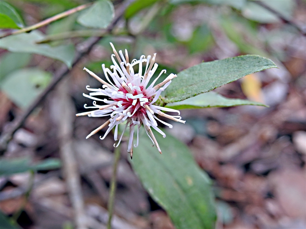 ナガバノ(長葉の)高野箒。左写真の異種。2年枝の葉は長楕円形で花が咲く