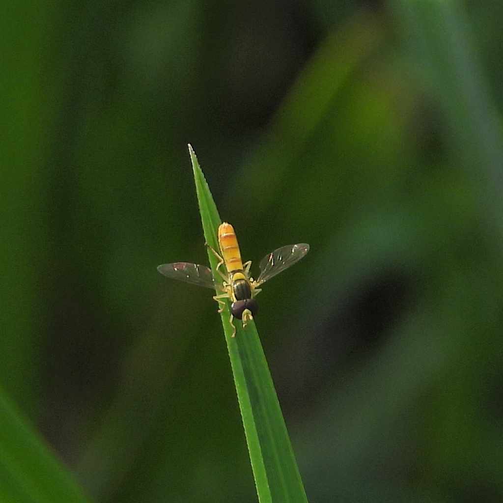 清流の草の先に、目を凝らしても分からないハナアブ?を発見・・・平和です(^_^)