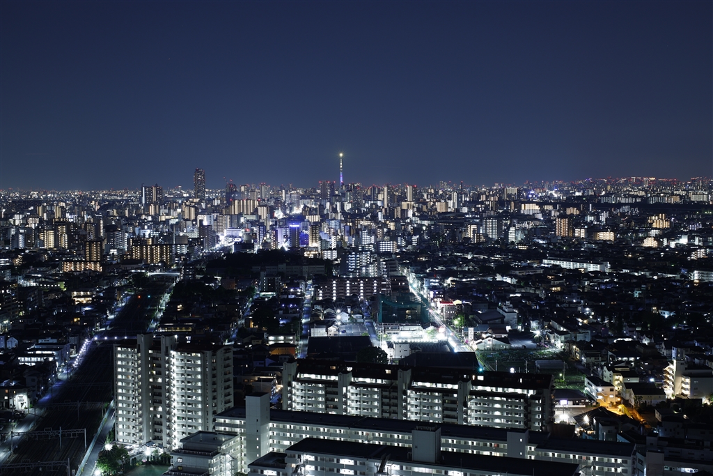 スマホじゃ撮れない、羽田に向かうジェットのライトの光跡まで映っている