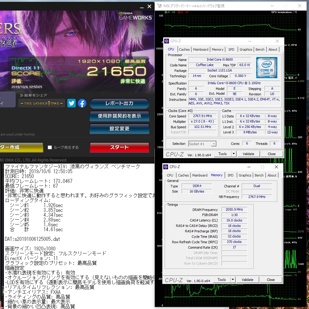 FF14 漆黒のヴィランズ i5-8600 + 2080Ti ADV 25℃ DDR4-4100 CPU-Z