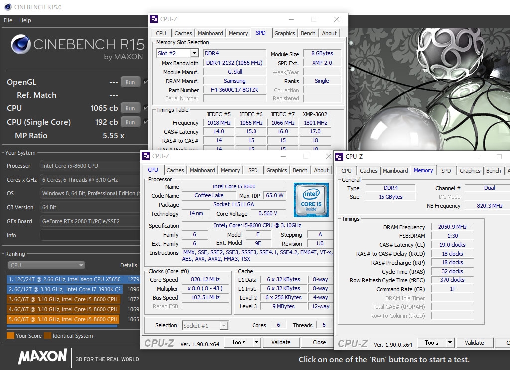 CINEBENCH i5-8600 FSB 102.5 DDR4-4100