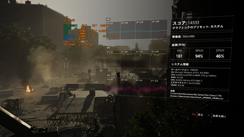TheDivision2 i9-9900K(65W) +2080TiADV 65% +150 +1000 20℃ 324.1W