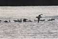 カモ?は撮影位置から 100mぐらいでしょう。