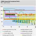 ・Intel 760p 512GB:書込量 6GBで1500MB/sから500MB/sに低下する。