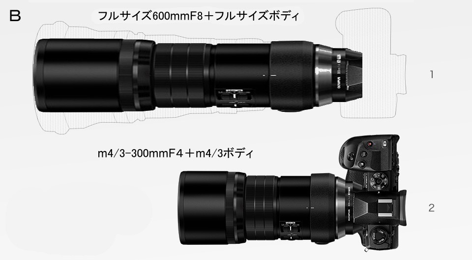 フルサイズ600mmF8とm4/3-300mmF4を比較